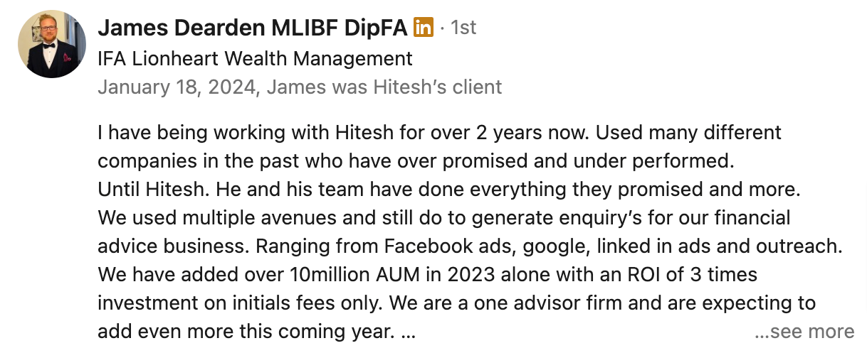 FS Marketing Consultancy, a lead generation agency based in the UK works with Financial Advisors helping them grow their pipeline and assets under management (AUM).