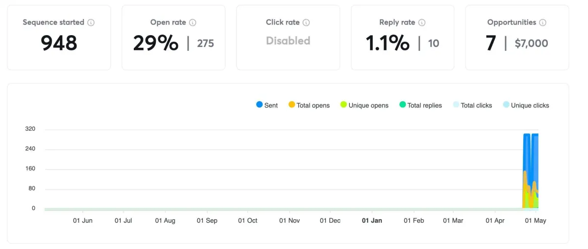 We booked an 18 appointments based on sending 300 emails per day (0.03%)